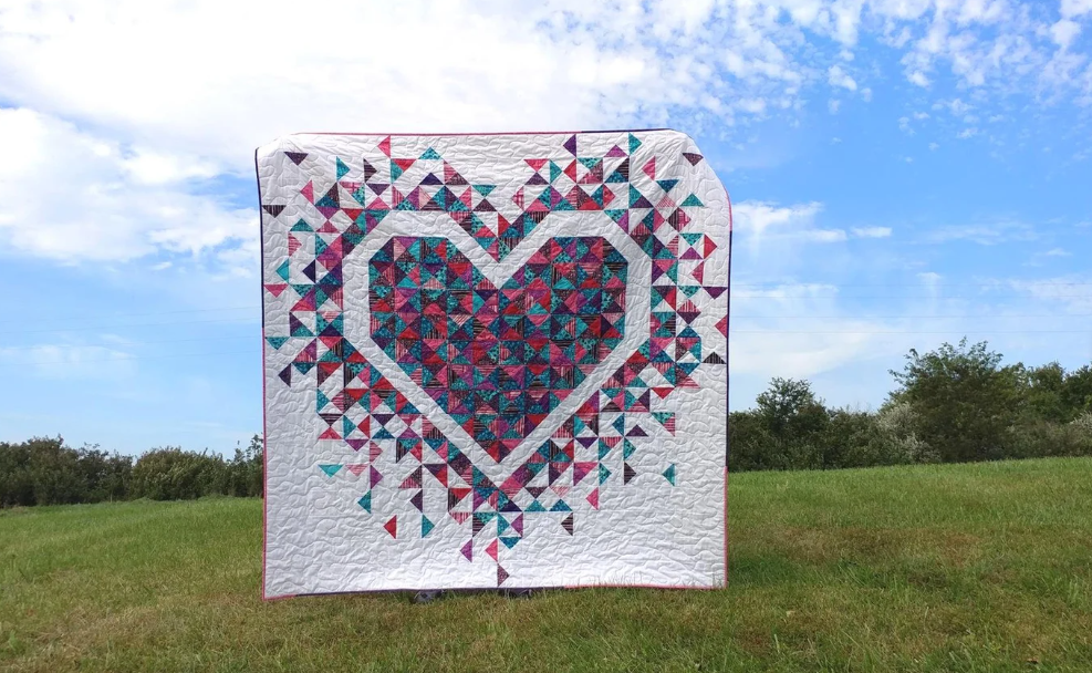What makes your heart burst with joy? Capture the feeling with the Exploding Heart quilt! This advanced beginner pattern makes a large 72” x 72” throw quilt and is fat quarter and fabric cutter friendly.